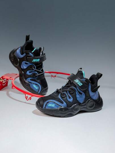 1 Pair Children's Low-Top Basketball Shoes, Special Material Upper, Thickened Non-Slip Outsole, Fashion Versatile, Suitable For Daily Wear, Adjustable Closure, Easy To Put On And Take Off, Retro Chunky Sneakers, Spring/Autumn - Multicolor - View 1