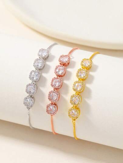1pc Elegant Versatile Square Inlaid Pull Bracelet, Suitable As Holiday Gift For Friends, High Cost-Effective Luxury Accessory - Square Pull-out Bracelet - View 1