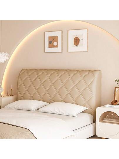 1pc Solid Color Diamond Quilted Soft Down Comforter Headboard Cover, Solid Color Padded Quilted Velvet Headboard Cover, Milk Microfiber Full Wrap Style, Elastic Stretch Back Fabric, Simple & Elegant, Soft & Smooth Feel, Durable, Provides New Sleeping Experience, Machine Washable, Enjoy The Gentle Cloud-Like Headboard, Full Wrap Headboard Cover, Thick Soft Padding For Headboard Makeover, Fits Twin And Full/Queen Beds, Easy To Remove And Wash - Khaki - View 1