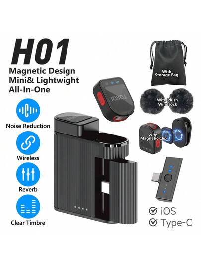 TOKQI New Professional Wireless Lavalier Magnetic Microphone For 2025, High Sound Quality, Noise Reduction, Reverberation, Plug And Play, Compatible With Common Smartphones, Very Suitable For Vlogs, Interviews, And Games, Mini Portable - Black - View 1