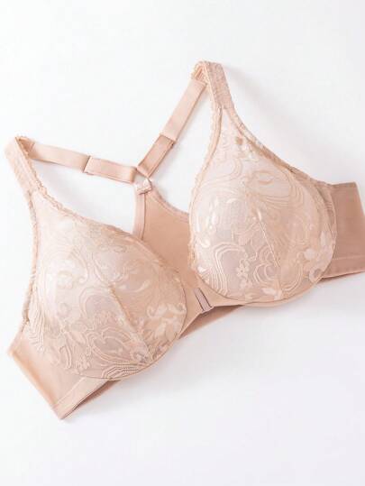 حمالة صدر بإغلاق أمامي بذراع رياضية حجم زائد بدون أسلاك مع دانتيل زهري - لون مشمشي - مشاهدة 9