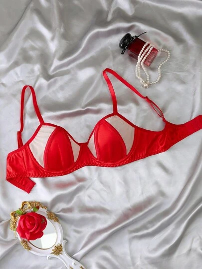 بدية نسائية بألوان متناقضة مميزة للاستخدام في عيد الحب ذات تصميم مثير وأنيق مدعومة بسلك للدعم - الأحمر - مشاهدة 1