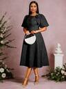 فستان كوكتيل أنيق مطرز بالأزهار غير متماثل مع فيونكة، مناسب للمناسبات كالمواعيد والحفلات والأعراس وحفلات الزفاف والتخرج وليلة رأس السنة وعيد الحب وغيرها