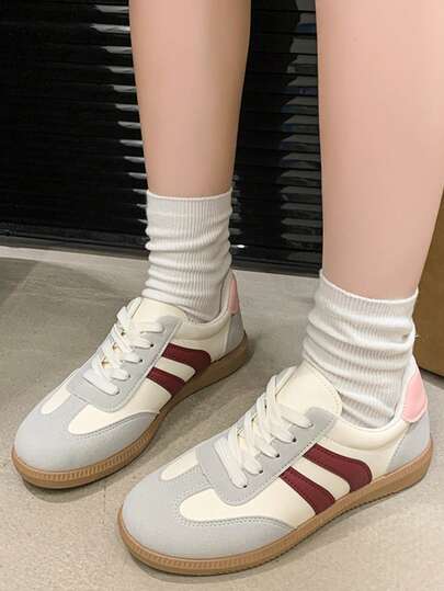 حذاء رياضي كاجوال عصري ملائم للنساء، تصميم أنيق مريح خفيف الوزن عاكس للموضة، له أربطة ولسان، مناسب للخارج أو الصالة الرياضية، مقاسات كبيرة - الأحمر - مشاهدة 5