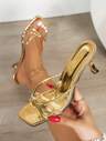 صندال كعب عالي بطراز كعب رقيق وفتحة للأصابع، ذهبي اللون، أحذية رسمية مريحة للنساء ذات كعب عالي عصري
