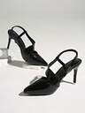 صندل نسائي ذو كعب عالي بلون أحادي لامع مع حزام خلفي، تصميم أصبع قدم مدبب وكعب سميك، صندل خلفي، كعب أسود عالي مناسب للحفلات والمناسبات الرسمية والزفاف، مريح للارتداء في المناسبات الرسمية
