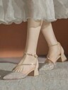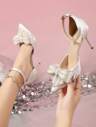 أحذية ذات كعب عالي بأصبع مدبب مرصعة بالراين ستونز، صنادل شفافة بفيونكة وحزام الكاحل، طراز جديد لربيع/صيف 2025، أنيقة، أحذية نسائية، ملابس حفلات