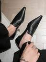 كعب عالي مدبب مزين بالراين موديل 2025 الأساسي، كعب رفيع أنيق وجذاب باللون الأسود للفساتين، مناسب للخريف والشتاء