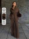 DAZY بدلة كاجوال مكونة من قميص مربوط من الجانب وبياقة وبنطال جينز واسع الساق للنساء