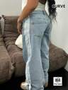 سروال جينز النسائي الأزياء الأمريكية الشائعة، فضفاض، كاجوال، ممزقة، متوسطة الخصر، مطاطية الخصر، مقاسات كبيرة