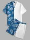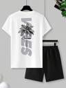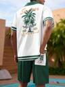 Manfinity Chillmode مجموعة قميص كم قصير مطبوع بطبعة الشجرة النخيل الأومبري + شورت، للعطلات، ملابس مريحة، قطعتان