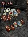 مجموعة أظافر مصنوعة يدويًا مميزة بطراز بوهيمي مكونة من 10 قطع لموسم الرعب، أظافر لوز بطلاء كروم ذهبي وفرنسي، أظافر Y2K بالبنفسجي والأحمر والعين القطة والنقش ثلاثي الأبعاد بالماس، أظافر اكريليك مزيفة كاملة الغطاء للنساء والفتيات مع ملصقات جل وملف أظافر مجاني
