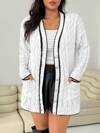 SHEIN EZwear كارديجان طويل أنيق وعصري للمرأة البدينة، باللون الأسود، للخريف والشتاء