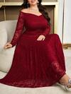 Modelyn رمضان فستان طويل الأكمام مطرز بالدانتيل مناسب للمقاسات الكبيرة، أنيق وبسيط وذو طابع رومانسي