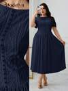 Modelyn فستان حفلة أنيق للمرأة ذات الحجم الكبير بلون أحادي مع خصر مطوي
