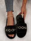 أحذية نوم شتوية سوداء بسيطة ذات ملمس ناعم، أحذية نوم فرو