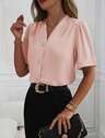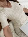 قميص نسائي مطرز بالتريكو كم قصير باللون الكريمي الأصفر، مناسب للاستعمال الرسمي الأنيق في مناسبات عيد الفصح والعطلات الوطنية وحفلات التخرج، مقاسات كبيرة