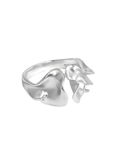 خاتم فضة إسترليني 925 مصمم بشكل فريد وبسيط بنسيج متجعد - أبيض - مشاهدة 1