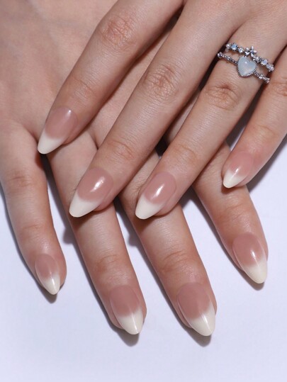 24 قطعة/مجموعة ملصقات أظافر فرنسية قصيرة بشكل اللوز، ذات لون أومبري عاري وأبيض حليبي، شرائط أظافر للضغط، تشمل 1 ملف أظافر و 1 زجاجة طلاء جل، لوازم الأظافر