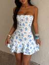 فستان صيفي أونيسي، فستان حفلات بخط A بدون أكتاف مطبوع بطباعة جذابة باللون الأزرق، فستان أنيق مناسب لعيد الحب، المواعيد، التجمعات، الحفلات، السفر، العطلات، الشاطئ وغيرها من المناسبات
