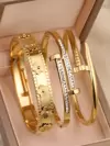 3 قطع / 1 قطعة سوار مطلي بالذهب الأصفر عيار 18 قيراط من الفولاذ المقاوم للصدأ على شكل رباعي ورقة البرسيم، مناسب للحفلات والاستخدام اليومي للنساء، بأسلوب أوروبي وأمريكي، مميز وفاخر، مرصع بالزركونيا المكعبة، مجموعة مجوهرات للزفاف، هدية للبنات والنساء والأقارب والأصدقاء، لمناسبات الزفاف والأعياد والعيد الحب
