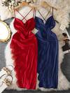SHEIN قميص نوم نسائي بلون واحد مع سحاب جانبي وذيل شق جذاب