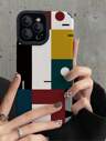 1 pieza Funda de teléfono de piel sintética de alta gama a prueba de caídas, antihuellas y a prueba de golpes, con diseño minimalista y personalizado de gato negro de dibujos animados, estilo patchwork y rayas verticales, compatible con Apple y otros modelos, gran regalo para amigos, familia, parejas, cumpleaños, festividades