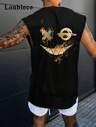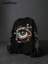 Lonblece 1 pieza Sudadera con capucha estampada con cruz y lavado ácido para hombre, otoño/invierno