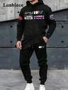 Lonblece 1 pieza Sudadera con cremallera de cuarto para hombre, estampado gráfico de número de carrera en patchwork negro y blanco, sudadera casual con cremallera de cuarto, otoño, parte superior de manga larga