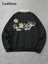 Lonblece 1 pieza Sudadera casual con media cremallera para hombre, diseño de patchwork en blanco y negro, estampado de letras y marca "Slow Living", para uso diario de jóvenes