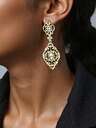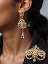1 Set Elegante de Cinturón de Cintura, Aretes y Broche de Joyería Estilo Marroquí Medio Oriental para Mujer, Colgante en Forma de Lágrima, Incrustado de Rhinestones de Colores, Patrón Floral Árabe Hueco, Adecuado para Bodas Tradicionales y Festivales