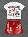 Manfinity Roghcode Camiseta blanca de estilo callejero popular con bordado de toalla de estampado completo a juego, atuendo diario, regalo para novio/esposo, regalo de aniversario