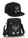 Set de 1 pieza/2 piezas de gorra de béisbol y bolso bandolera con estampado de oso de hip hop, moda callejera para deportes al aire libre unisex con gorra de béisbol de ala plana y bolso de hombro ajustable, regalo para ti o tus amigos