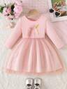 Vestido de manga larga con volantes, parches y malla con mariposas 3D para niñas jóvenes en Navidad, con cinturón