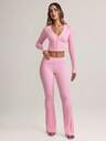 Conjunto de pantalones anchos de pierna ancha y camiseta de manga larga con cuello en V de unicolor casual para mujer