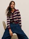 Nöista Cárdigan de punto a rayas con mangas largas, cuello clásico y cierre delantero de botones, que ofrece una capa versátil con inspiración retro perfecta para los atuendos de vacaciones de primavera de las mujeres, un estilo casual fácil, looks cotidianos pulidos, atuendos festivos de cumpleaños para la ropa de mujer y un Día de San Valentín relajado.