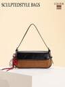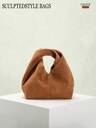 1 pieza Bolso con estilo esculpido Otoño/Invierno Nuevo Vintage Marrón Maillard Tipo Terciopelo Bolso de Mano de Cuero PU, Bolso de Mujer Estilo Minimalista, Adecuado para Ir al Trabajo con Abrigo