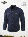 LEDUNTINO [Primavera/Verano] Camisa casual de botones de moda para hombre, color verde sólido, estilo deportivo, de secado rápido, regalo para novio, camisa de manga larga para hombre de primavera y otoño, con múltiples bolsillos, elástica, camisa de solapa con bolsillo con cremallera, ropa de primavera/otoño para hombres