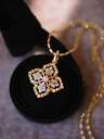 1 pieza Collar colgante de flor de seis pétalos con circonita roja de estilo versátil INS de plata de ley 925, diseño elegante y vintage, adecuado para uso diario de mujeres, regalo para vacaciones y fiestas