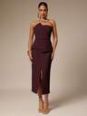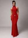 Silquee Vestido elegante de tirantes finos con adornos de strass y bajo de cola de pez de unicolor para mujer
