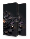 GLANDOTU Funda de teléfono con tapa estilo magnolia de respaldo negro con cordón, soporte y portacartas para protección contra golpes. Elegante funda de teléfono de piel sintética con estampado floral, adecuada para muchas marcas y modelos de teléfonos celulares