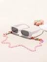 1 pieza Montura de gato vintage adecuada para niños y niñas de 8 a 12 años, de unicolor y con estilo simple, junto con 1 cadena de gafas con anillos de colores, adecuada para salidas de vacaciones, combinación de moda y regalos festivos