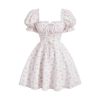 Breezaya Vestido corto de cami con busto fruncido y detalle de lazo al frente con estampado floral pequeño para mujer