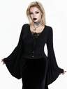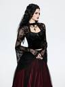 Breakform Damen Gothic Sexy Spitze V-Ausschnitt Samt Patchwork mit Metall Kreuz Dekor Figurbetontes Top