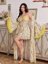 SHEIN Damen Strick Spitzenbesatz Karree-Ausschnitt Cardigan & Blumen Muster Hose Pyjama Set, Langarm