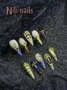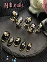 10 Stück handgemachte goldene Acryl-Aufstecknägel in langer quadratischer Form, rosa & blau & braun & apricotfarbene funkelnde französische Spitzennägel mit Perleinbettung, Fake-Nägel mit handgezeichnetem Leopardenmuster & Sternen, blau-schwarz batikfarbene 3D-Krone & Liebe & Schmetterling, geeignet für Partys, Feiertage, Mädchen, mit kostenlosem Gel-Sticker und Nagelfeile