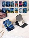 1 Stück klassischer Y2K Serie tragbarer Kosmetikspiegel, faltbarer leichter ultra-dünner praktischer Handhandspiegel, hochwertig lederummantelter hell versilberter Nano-Elektroplattierter Rahmen, feine Details, geeignet für alle Anlässe und Personen, faltbarer quadratischer Taschenspiegel mit Y2K Elementen