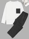 Snug Zone 2 Stücke Herren Einfarbig Patchwork Rundhals Langarm Hemd und Hose Loungewear Set, Herbst Winter Kleidung