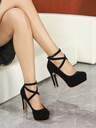 Schwarze Wildleder Plateau-Pumps mit dickem Absatz und rundem Zehenbereich, sexy Damenschuhe
