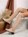 FVPFVP 2025 Neue schwarze spitze Overknee-Stiefel für Frauen, Stiefel mit dickem Absatz, Falten, schmal geschnitten, Reitstiefel